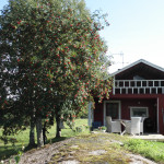 Mökissä on tupakeittiö, eteinen, wc, sauna ja yläkerrassa pieni huone ja terassi.